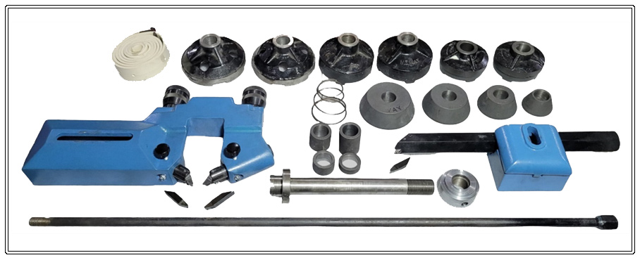 Main arbor supported by precision bushes is powered by the sealed oil-bath gear box. Multiple speeds of arbor along with electronic controlled variable feed speeds for both drum and discs are available. The quality of surface finish while re-machining is achieved with Titanium coated carbide cutting inserts supplied with the machine.